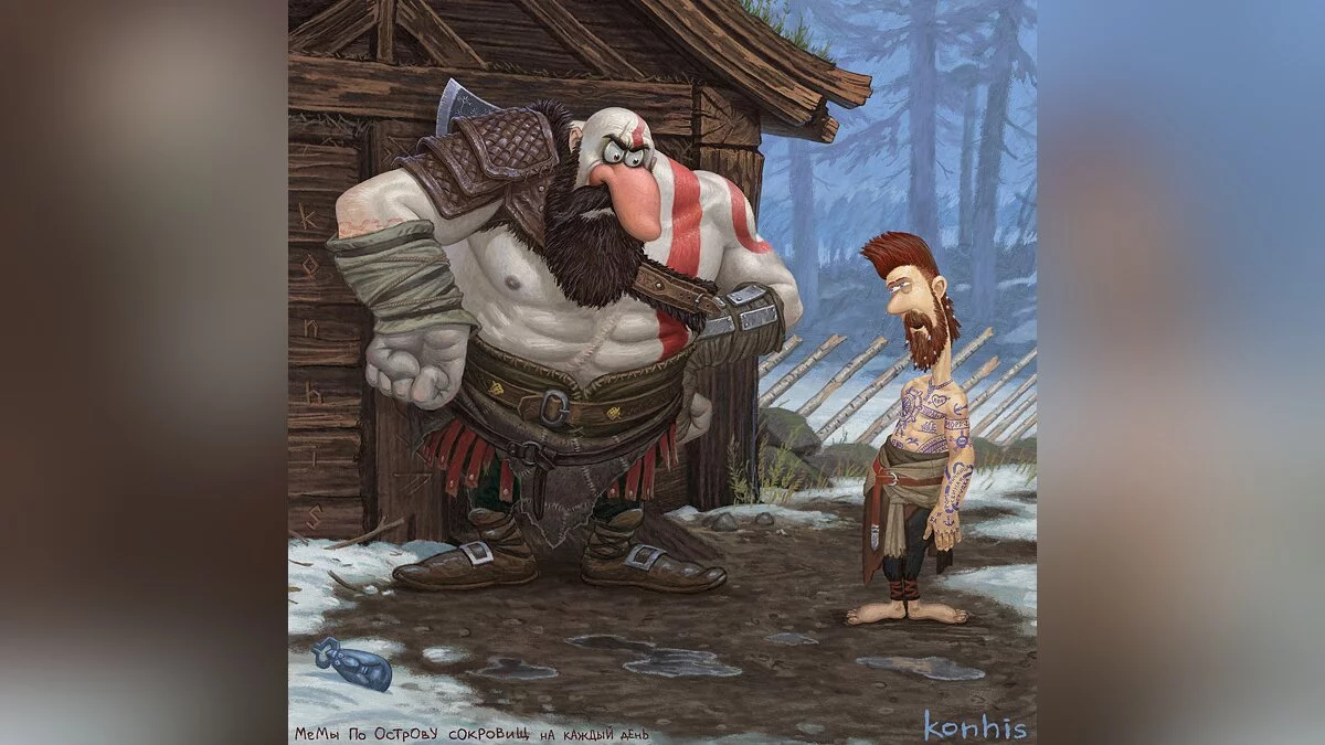 Художник из Батуми Михаил Сидоренко опубликовал несколько артов, в которых показал героев The Witcher 3, God of War и некоторых других игр в стиле старого мультфильма «Остров сокровищ».