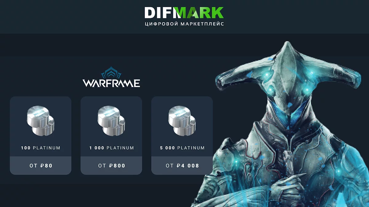 А как насчет шутеров? Warframe — во многом легендарная игра. Сражайся с врагами, усовершенствуй навыки и выигрывай. Инвестируя в платину на Difmark, сможешь приобрести в игре более технологичное оружие, отличную экипировку и многое другое. Винтовки, дробовики, снайперки, пистолеты, сюрикены, мистические шлемы, реликвии — вариантов много. А еще можешь торговать валютой сам.