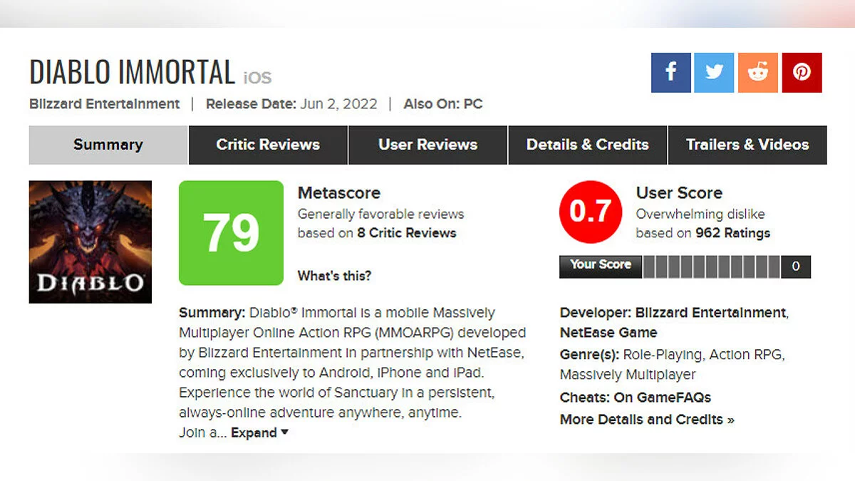 После релиза Diablo Immortal игроки завалили проект негативными отзывами. На Metacritic игра получила разгромные 0,7/10 баллов. Причиной такой реакции стала не только система монетизации, но и обман разработчиков.