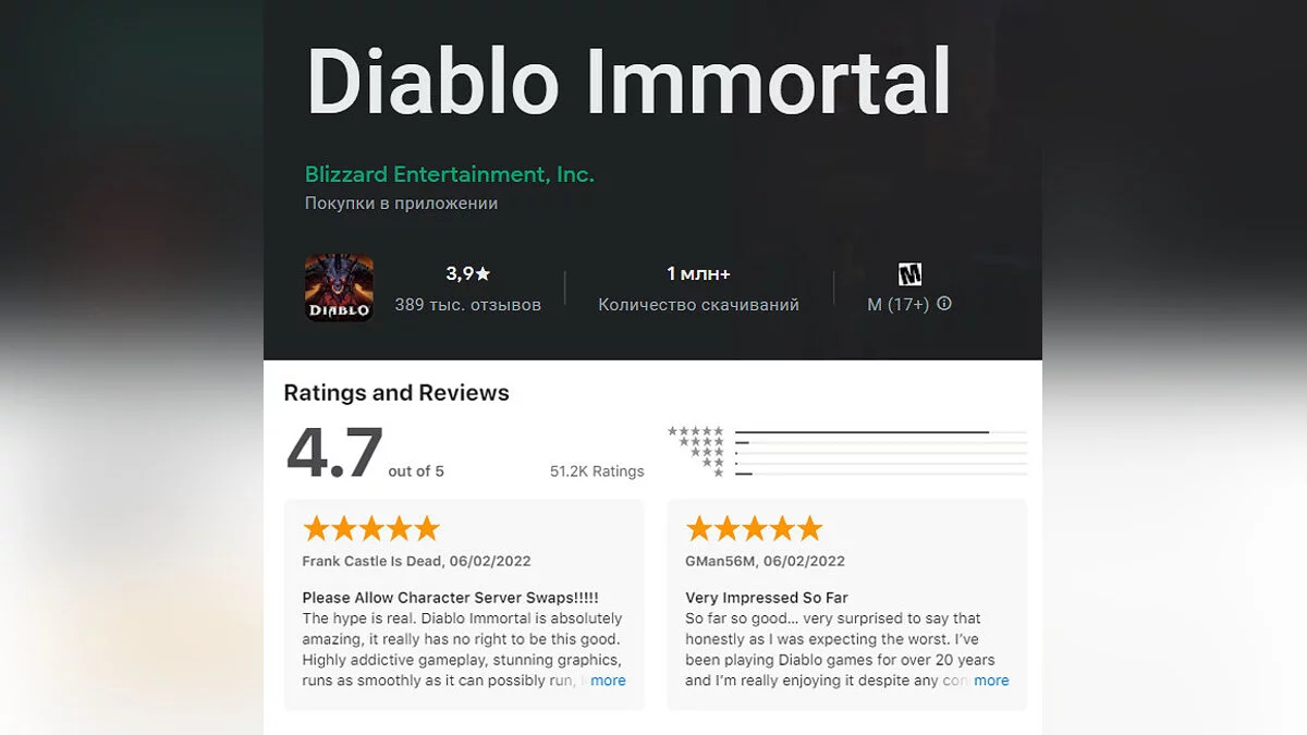 Diablo Immortal стала худшей игрой Blizzard по мнению пользователей Metacritic