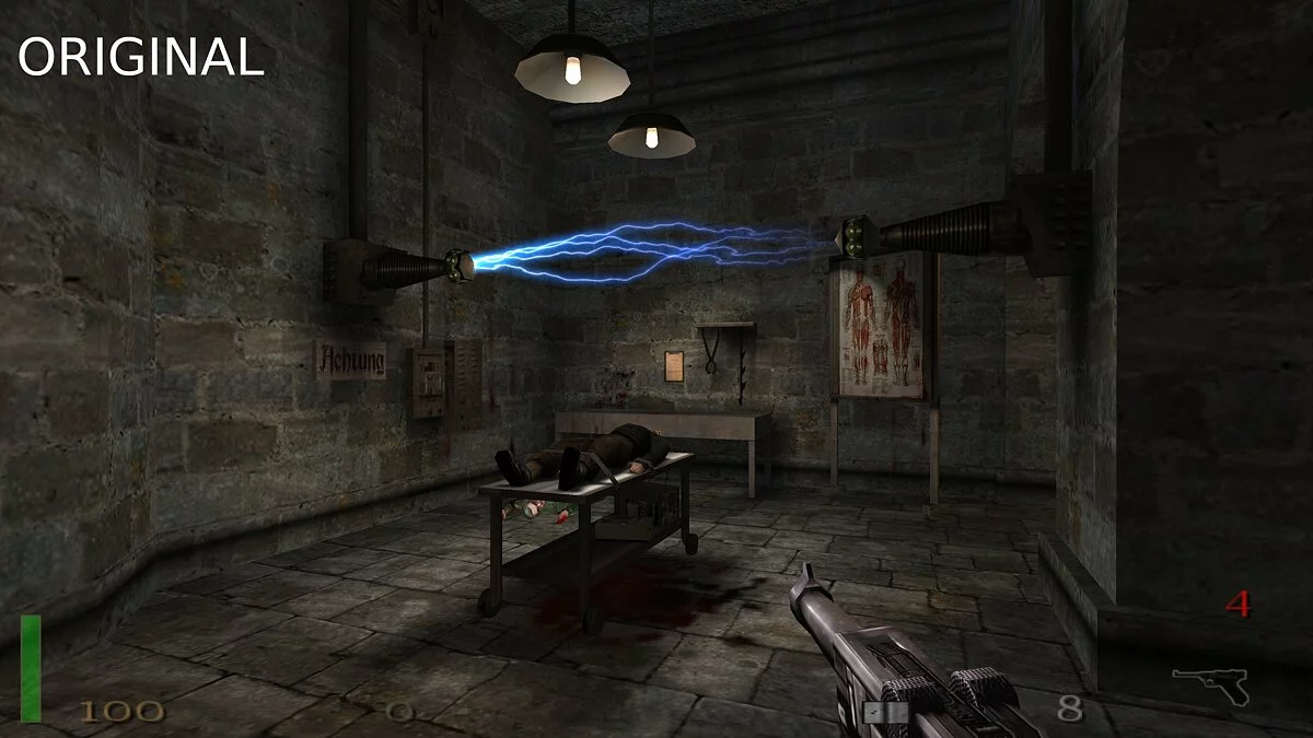 Отметим, что работа пока находится на ранней стадии, так что пока заметны «шероховатости». А некоторые игровые элементы даже не предназначены для излучения света, например, факелы. Это планируется исправить вручную. Также отметим, что для модификации автор выбрал не оригинальную игру, а версию iortcw с открытыми исходниками и поддержкой DirectX 12.