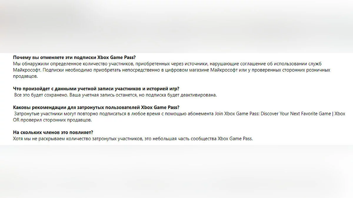 В Microsoft подтвердили отключение Game Pass у некоторых пользователей и рассказали подробности