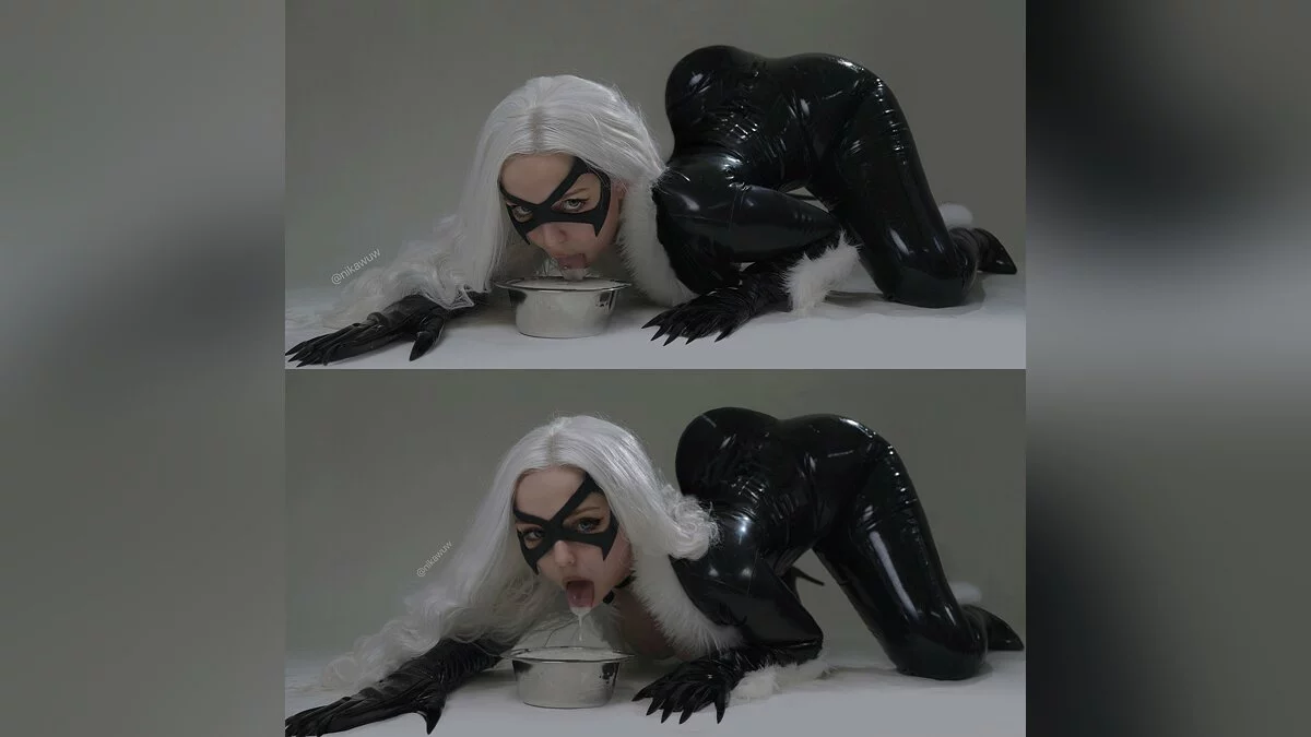 Новости Косплей Косплеерша с пышными формами показала себя в образе Черной кошки из Marvel и в сексуальной позе слизала молоко с миски