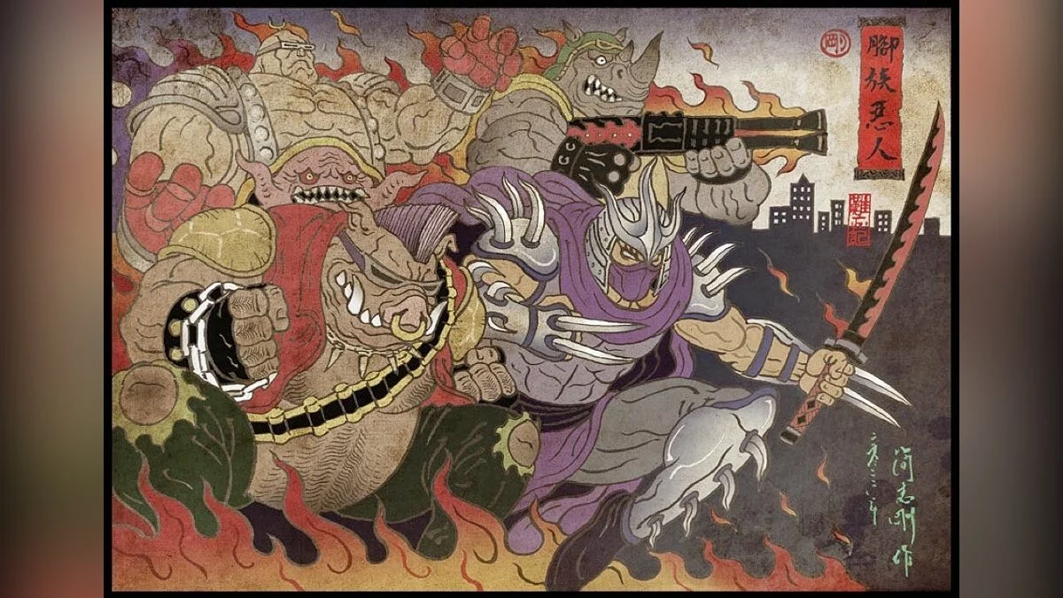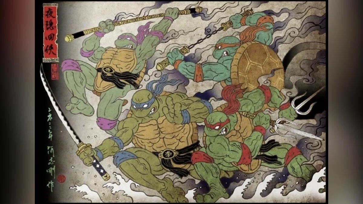 Художник с ником Justin96636 нарисовал арты, на которых изобразил Черепашек-ниндзя, а также их заклятых врагов в необычном стиле — укиё-э. Это японское изобразительное искусство, получившее развитие с периода Эдо. Похоже, что именно так могли бы выглядеть культовые персонажи, если бы их придумали в феодальной Японии за несколько сотен лет до выхода комикса Teenage Mutant Ninja Turtles.