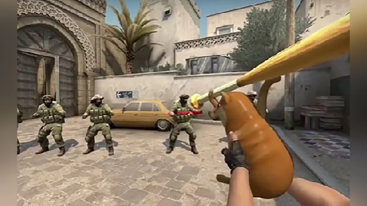 В TikTok завирусился ролик, в котором автор с ником CSGOholic с помощью мода добавил в Counter-Strike: Global Offensive уникальное оружие — песика Чимса с битой из интернет-мема Бонк. Правда, если в оригинальном меме удар битой получает сам песик, на видео эта участь постигла его противников.