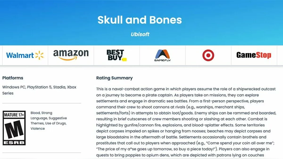 Пиратский экшен Skull & Bones от Ubisoft получил взрослый возрастной рейтинг M (17+). Его выдало агентство ESRB. Подобные рейтинги игра уже получила в Бразилии и Южной Корее.