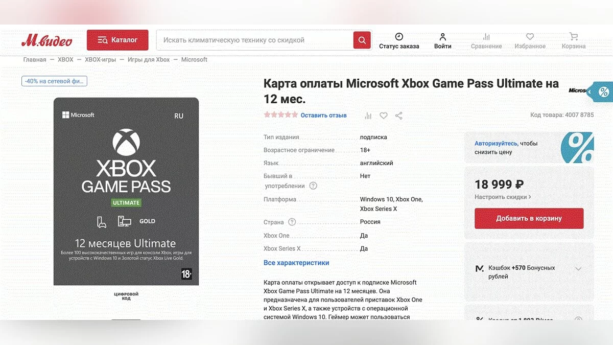 В «М.Видео и «Эльдорадо» появились карты оплаты Xbox Game Pass Ultimate на 12 месяцев — за 19 тысяч рублей