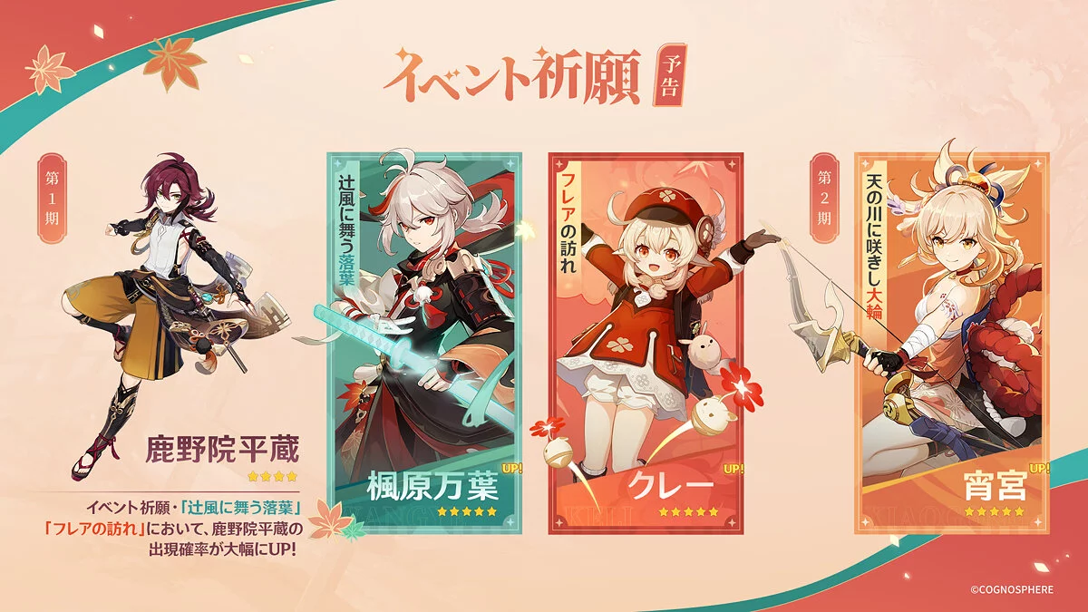 Также авторы раскрыли главных персонажей баннеров. В первой половине патча будут доступны баннеры с Кадзухой и Кли, во второй — с Ёимией.