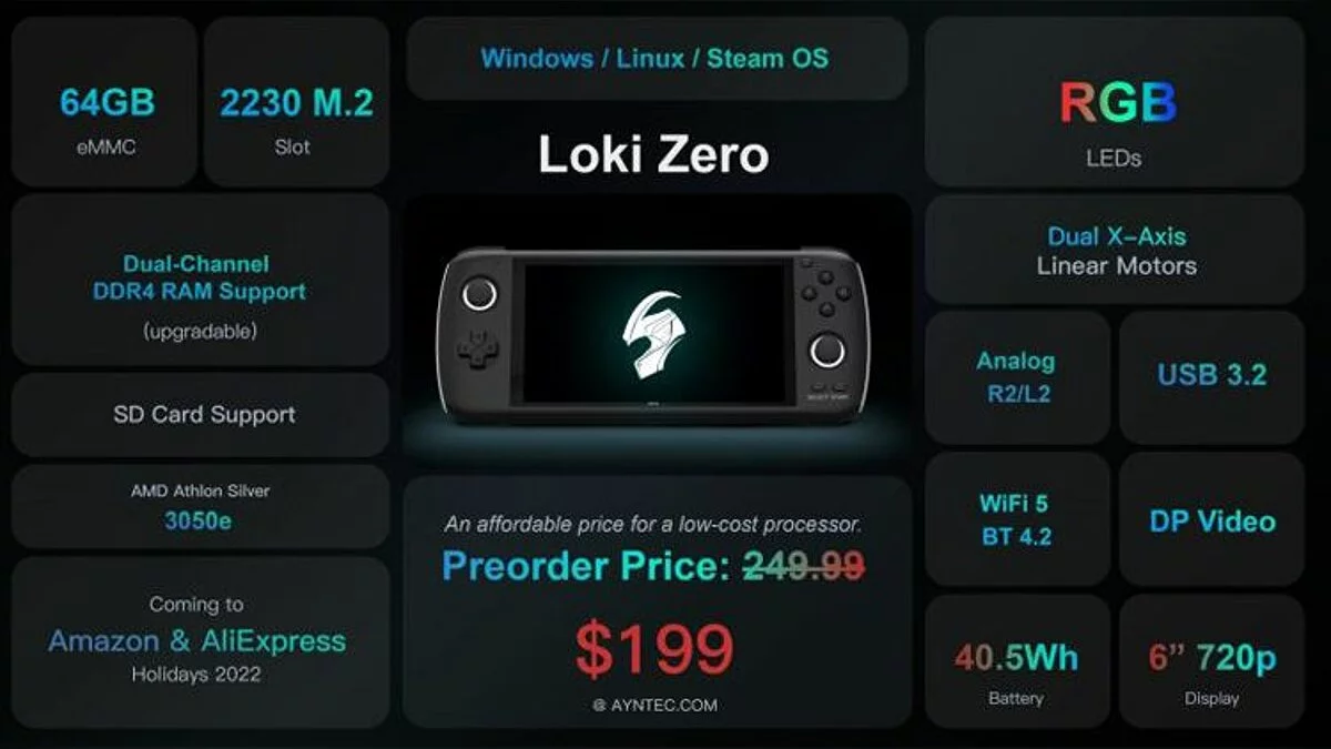 Китайский производитель AYN добавил в список портативных консолей модель Loki Zero с довольно слабым «железом» и низкой ценой.