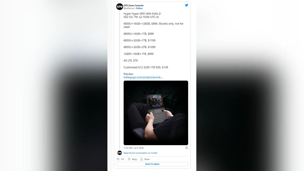 На площадке Indiegogo стартовала новая кампании по сбору средств на игровой мини-ноутбук GPD Win Max 2. И его там можно предзаказать.