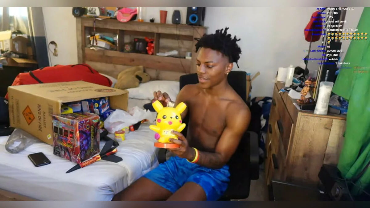 Специально для трансляции стример купил много пиротехники, включая безобидную фигурку Пикачу. iShowSpeed посчитал, что это бенгальская свеча, поэтому поджег фитиль прямо в комнате. Сначала из головы покемона заструился мощный фонтан, а потом искры пошли из четырех дополнительных отверстий и фигурка начала вращаться.
