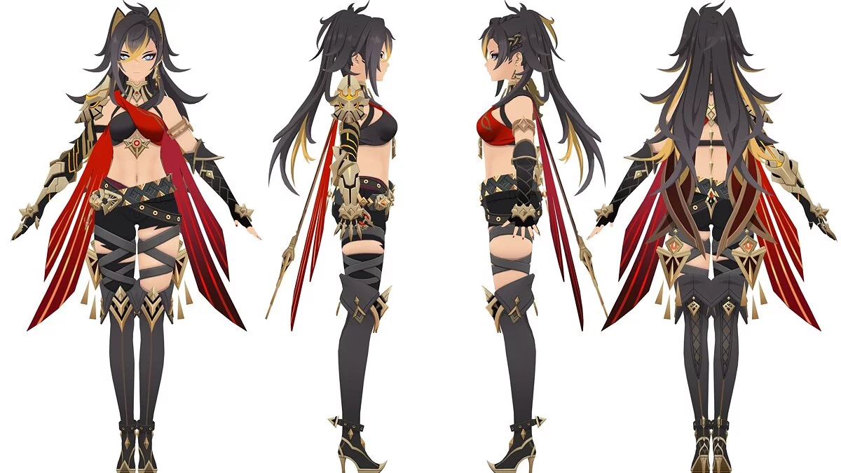 - Дахия (редкость — 4 звёзды, стихия — пиро, оружие — двуручный меч).