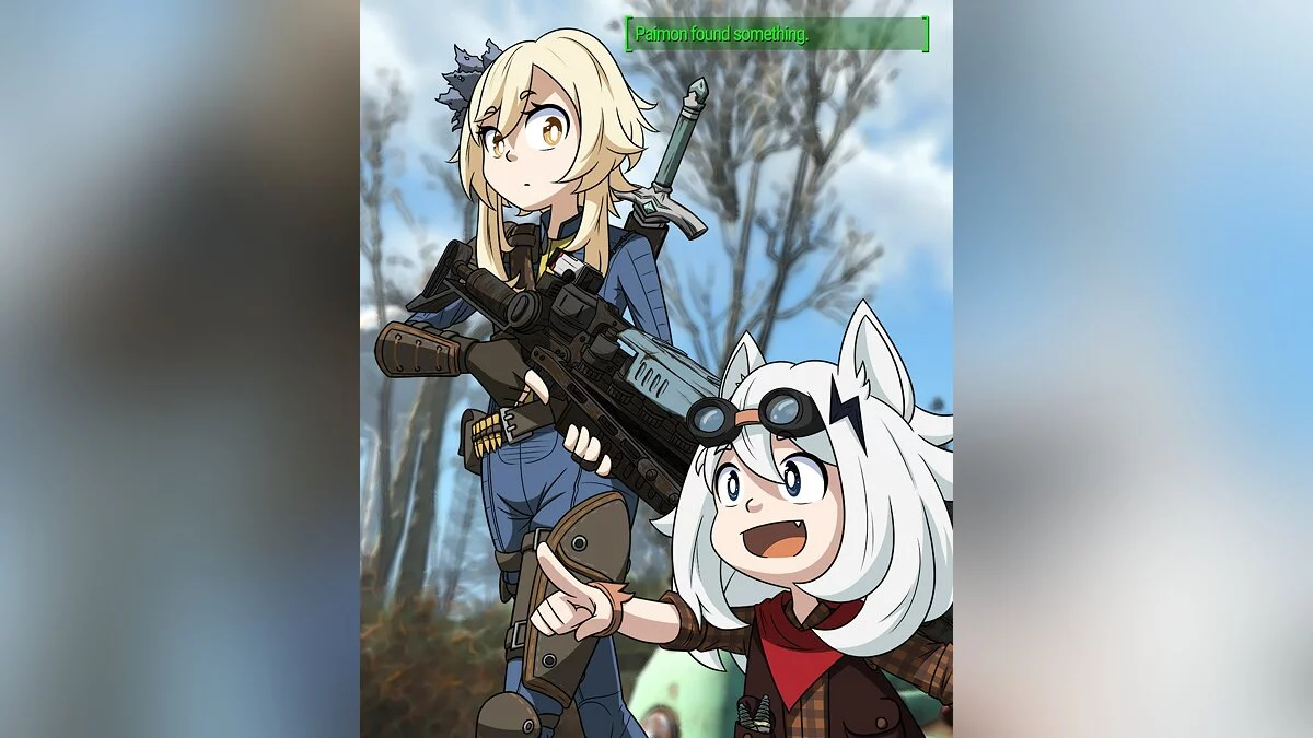 Реддитор ashreix решил перенести главных героев Genshin Impact в ролевую игру Fallout 4. Путешественнице досталась роль Выжившей, а Паймон — Псины (кличка собаки главного героя). Что из этого вышло, художник показал на арте.