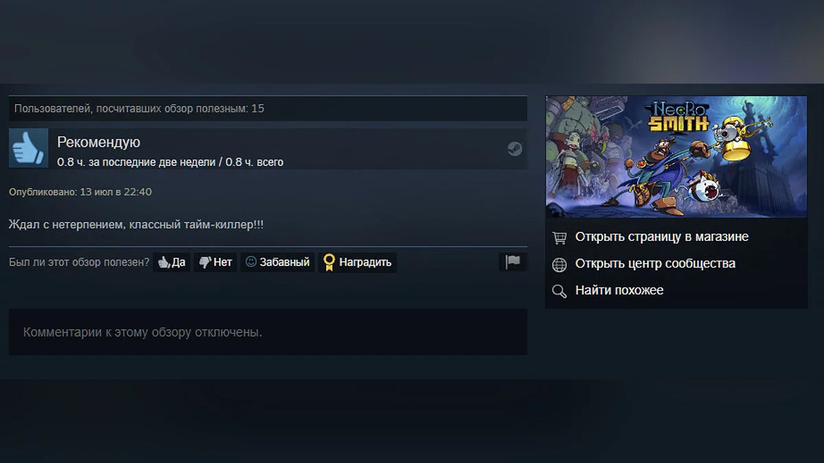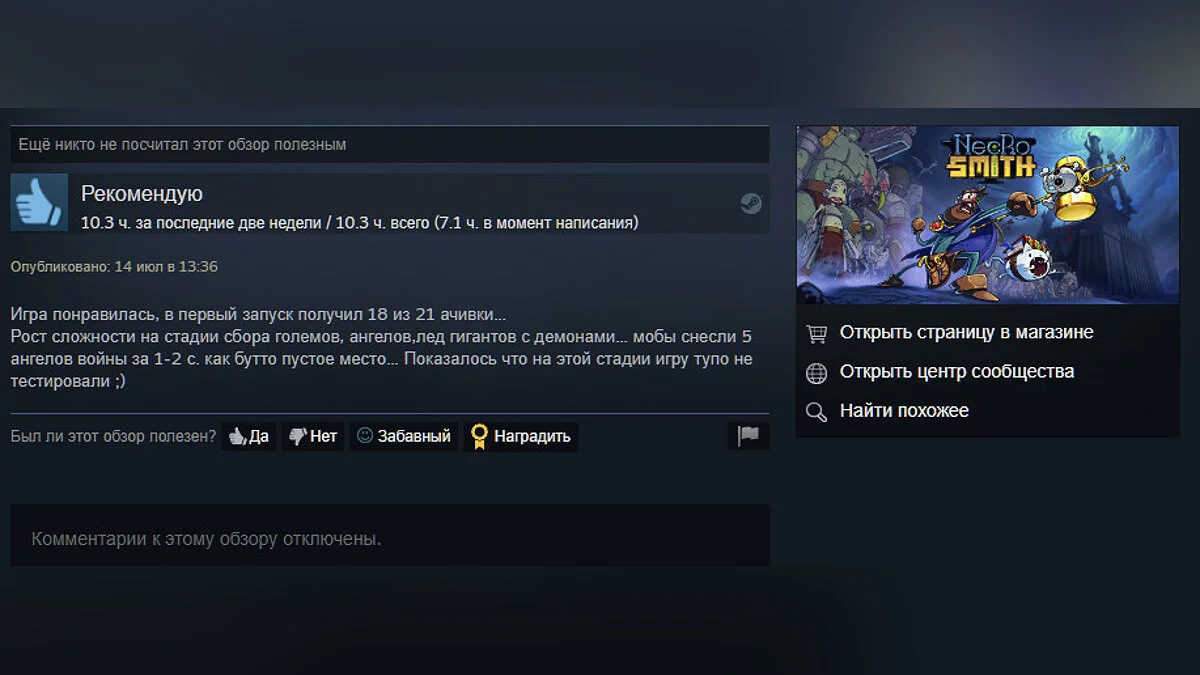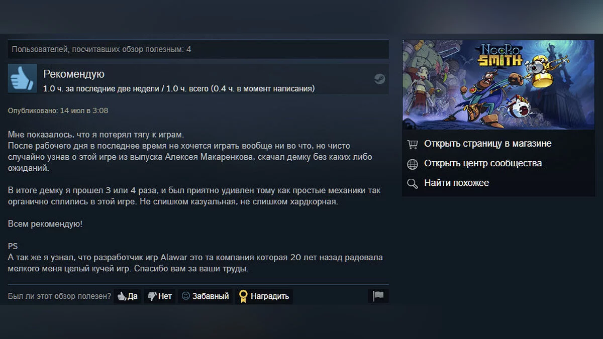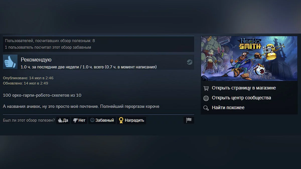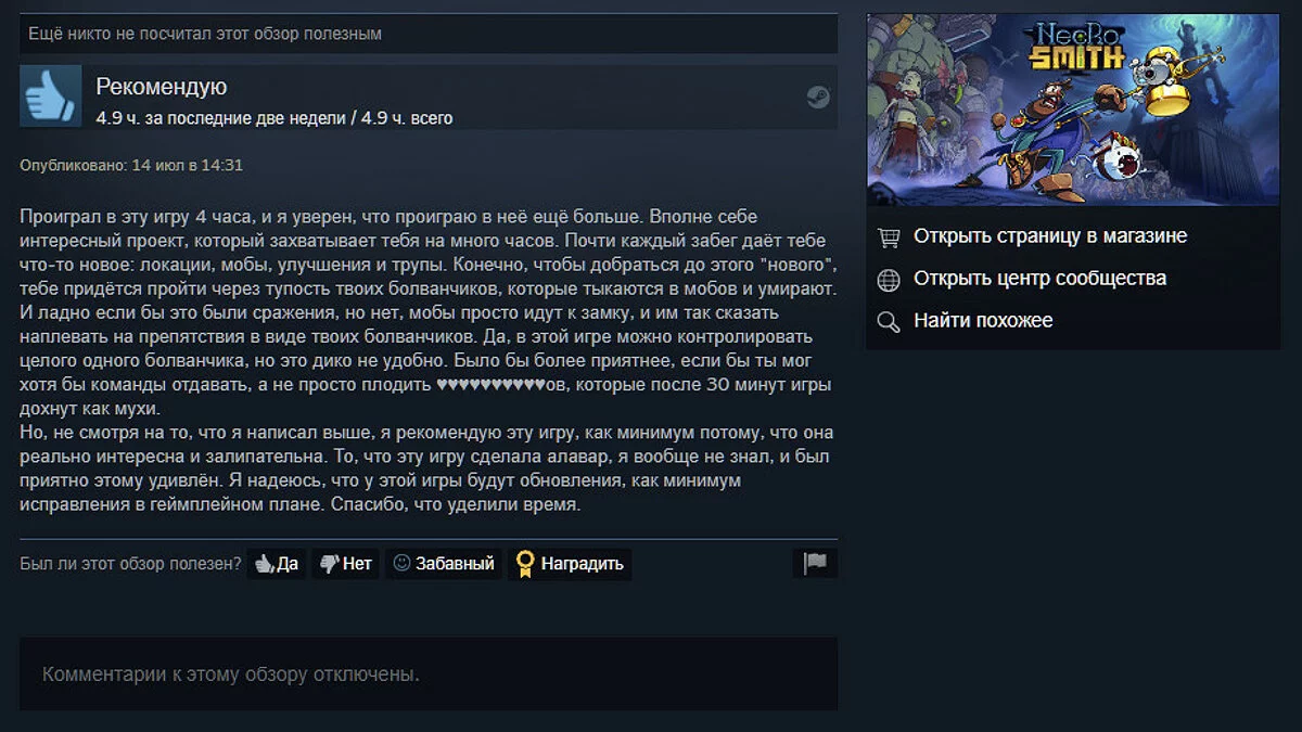 На момент написания заметки рейтинг в Steam составляет 87%. Вот некоторые из обзоров.