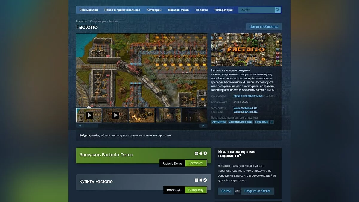 В российском Steam резко подорожала игра Factorio — теперь её можно купить за 10 тысяч рублей