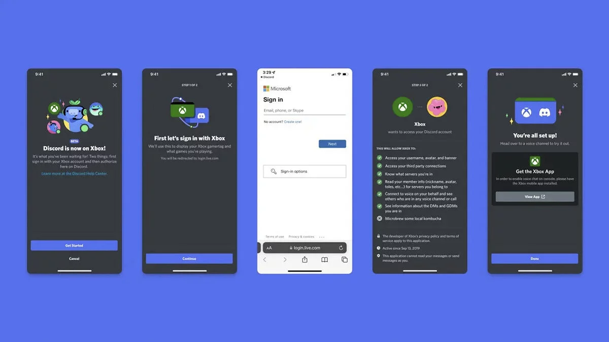 Чтобы начать пользоваться приложением, необходимо найти его в разделе «Тусовки и чаты» на консоли, а также связать аккаунты Discord и Xbox.
