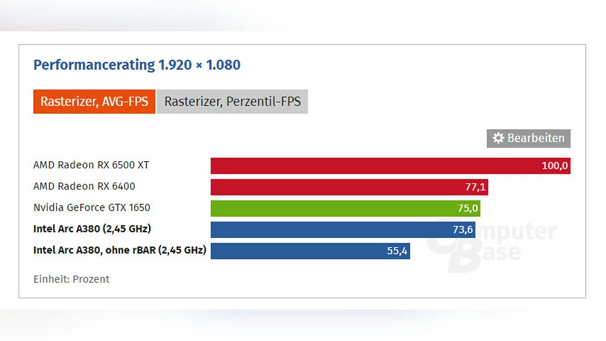 Производительность же Arc A380 примерно соответствует уровню GeForce GTX 1650 и Radeon RX 6400. Однако здесь играет роль оптимизация той или иной игры под карту. Также, как оказалось, новинку можно разогнать, тогда она выходит на более высокий уровень производительности.