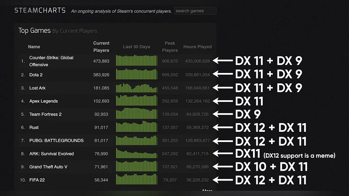Также в компании пояснили, что карта лучше всего работает с играми на DirectX 12 и Vulkan. А вот в DirectX 11 ситуация намного хуже. К примеру, в Shadow of the Tomb Raider переход с DX11 на DX12 обеспечил двукратное увеличение частоты кадров.