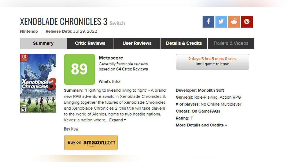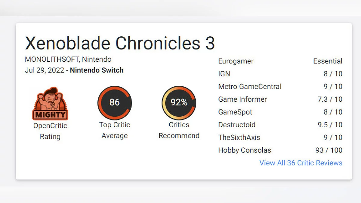 За три дня до релиза появились оценки Xenoblade Chronicles 3 — фэнтезийной JRPG от студии Monolith Soft. Критики полностью довольны новинкой, о чем говорят 86 баллов на OpenCritic и 89 баллов на Metacritic.