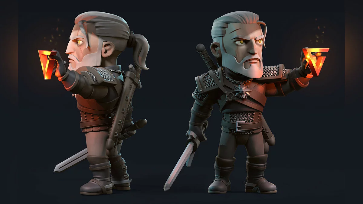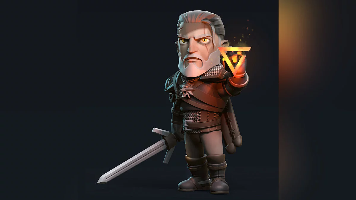 В своей работе он превратил брутального охотника на монстров в милого героя мультфильма. На рендерах одной рукой Геральт держит меч, другой использует знак Аксий. Так мог бы выглядеть ведьмак, если бы про него сняли трёхмерный анимационный сериал или сделали красочную мобильную игру.