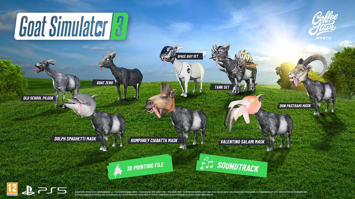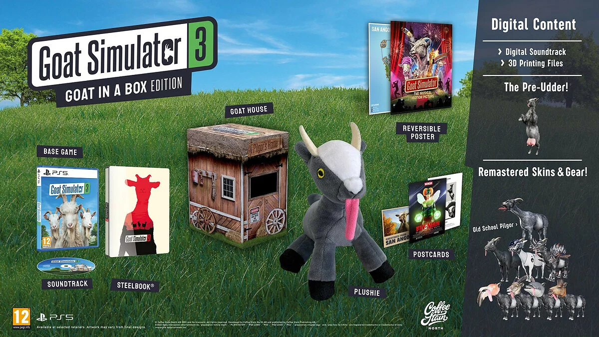 Помимо стандартной версии, обещано также коробочное коллекционное издание Goat in a Box. В его составе есть игровые бонусы, плюшевая коза, открытки и плакат, а также коробка в виде козьего стойла.