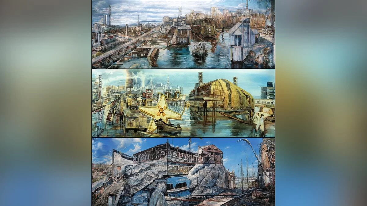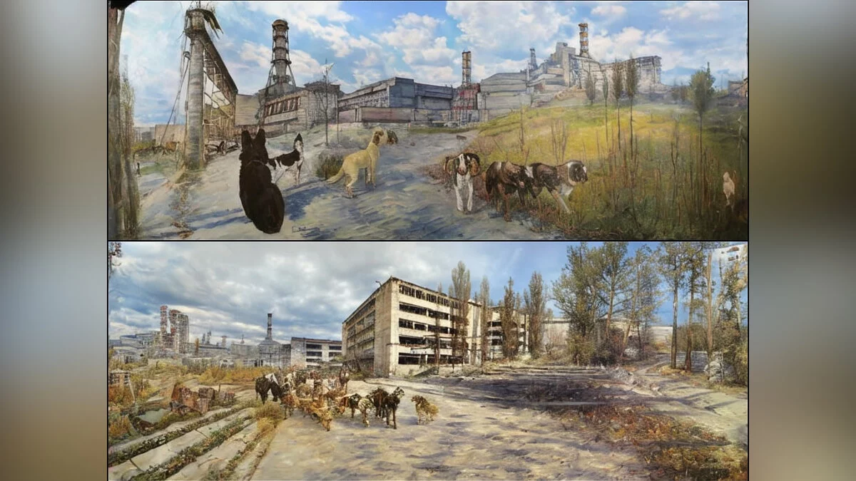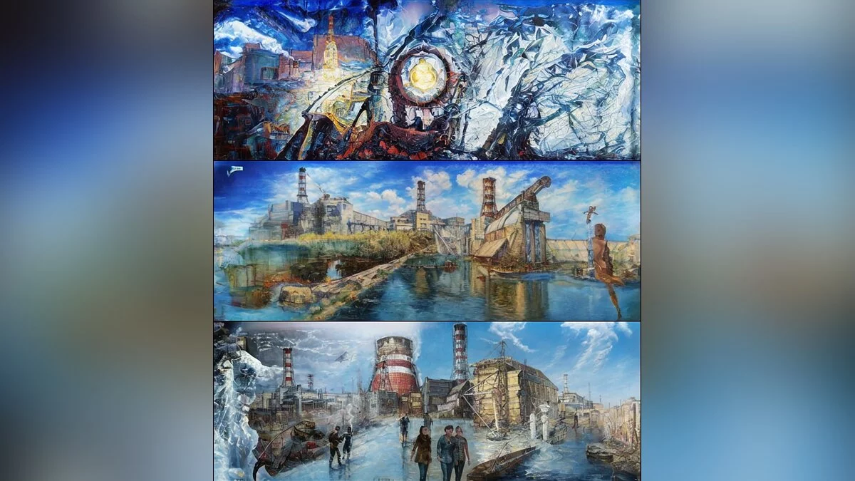 Энтузиасты при помощи нейросети Кandinsky попытались нарисовать пейзажей Чернобыльской Зоны Отчуждения. Хотя изображения напрямую не связаны со «Сталкером», на них можно найти знакомые места из культовой серии игр.