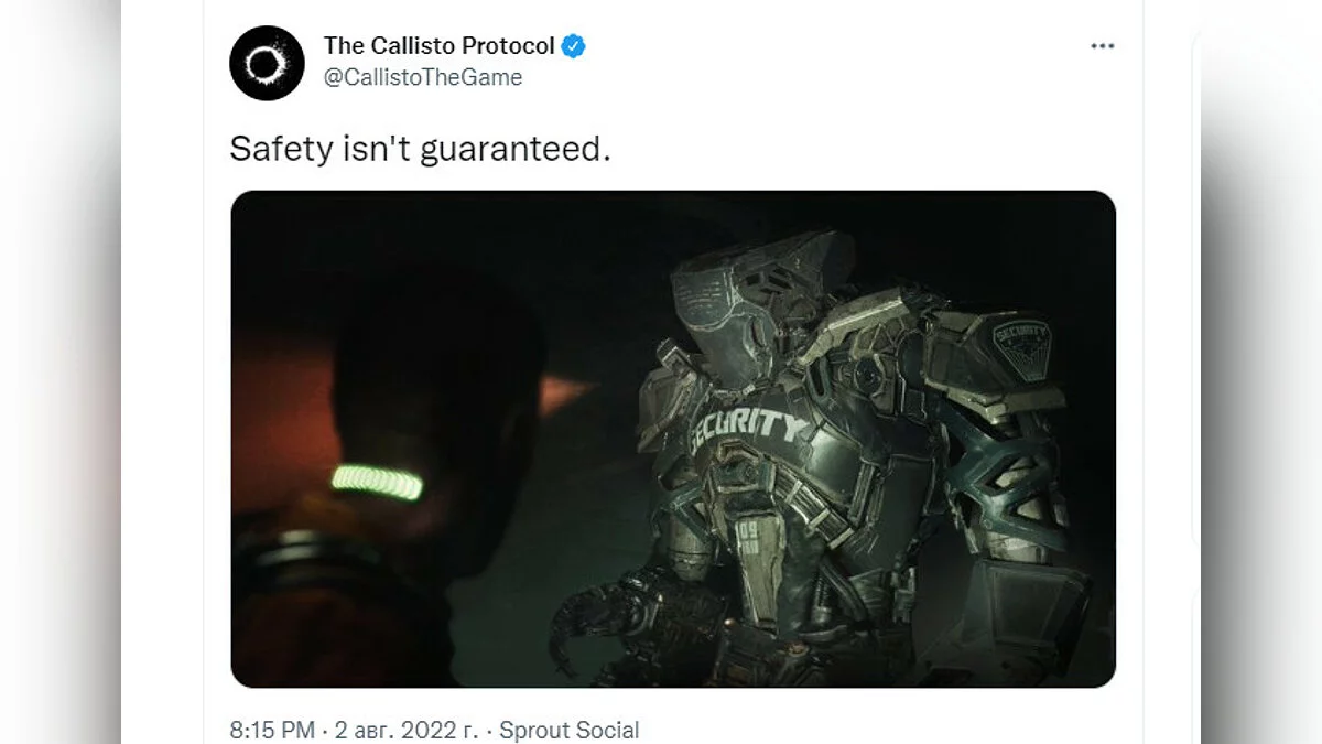 Разработчики The Callisto Protocol показали свежий скриншот с роботом-охранником, который выступает одним из врагов в игре. Изображение сопровождается фразой «Безопасность не гарантируется».