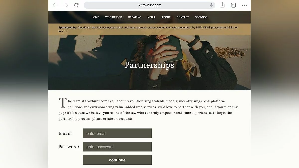 В ответном письме есть ссылка, которая ведёт на сайт Троя Ханта, где спамера просят зарегистрироваться — ввести электронный адрес и придумать пароль. И вот тут кроется главная ловушка, при попытке придумать пароль оказывается, что он не подходит по тем или иным критериям.