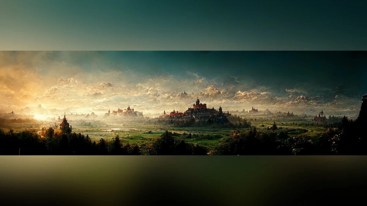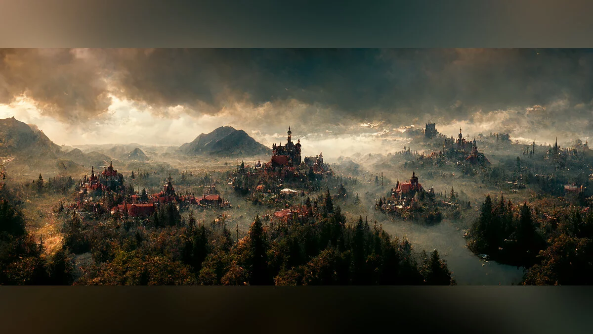 Изображения были сгенерированы при помощи нейросети Midjourney, которая рисует картинки по описанию. Результат получился немного «смазанным», но очень атмосферным. Чем-то кадры напоминают регион Туссент из DLC.