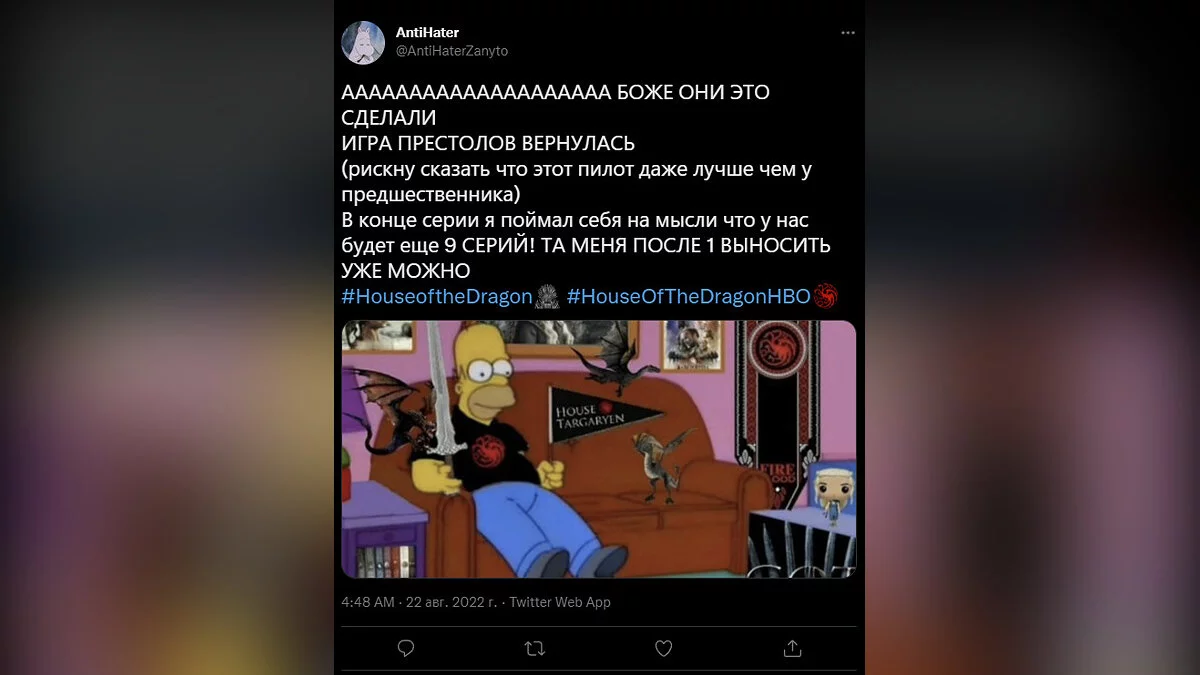 «ИГРА ПРЕСТОЛОВ ВЕРНУЛАСЬ» — как интернет встретил первую серию «Дома дракона». Шутки, мемы и реакции