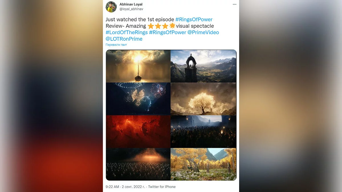 «Только что посмотрел первый эпизод “Колец власти”. Это великолепное визуальное зрелище».