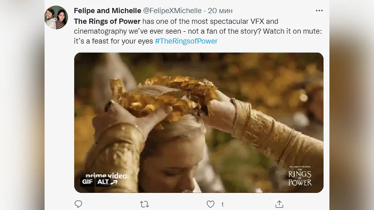 «В “Кольцах власти” одни из самых захватывающих визуальных эффектов, которые мы когда-либо видели — вам не нравится эта история? Смотрите без звука: это праздник для ваших глаз».
