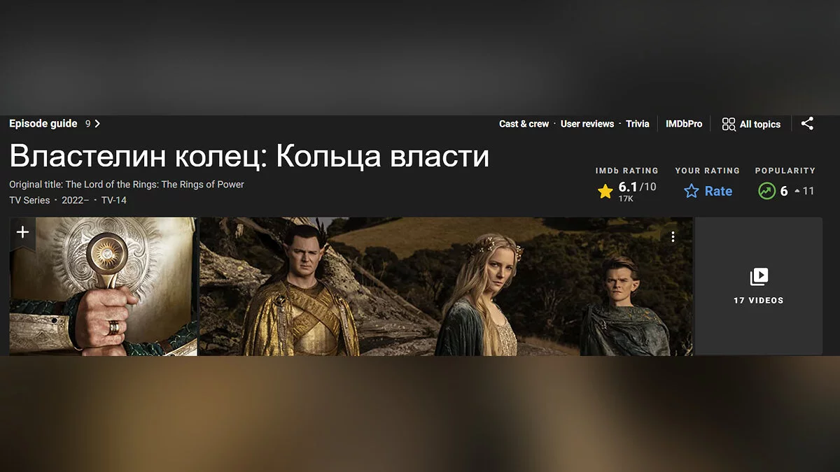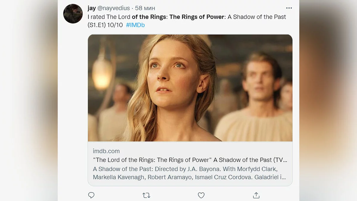 «Я оценил “Властелин колец: Кольца власти” (первый эпизод “Тень прошлого”) на 10 из 10».