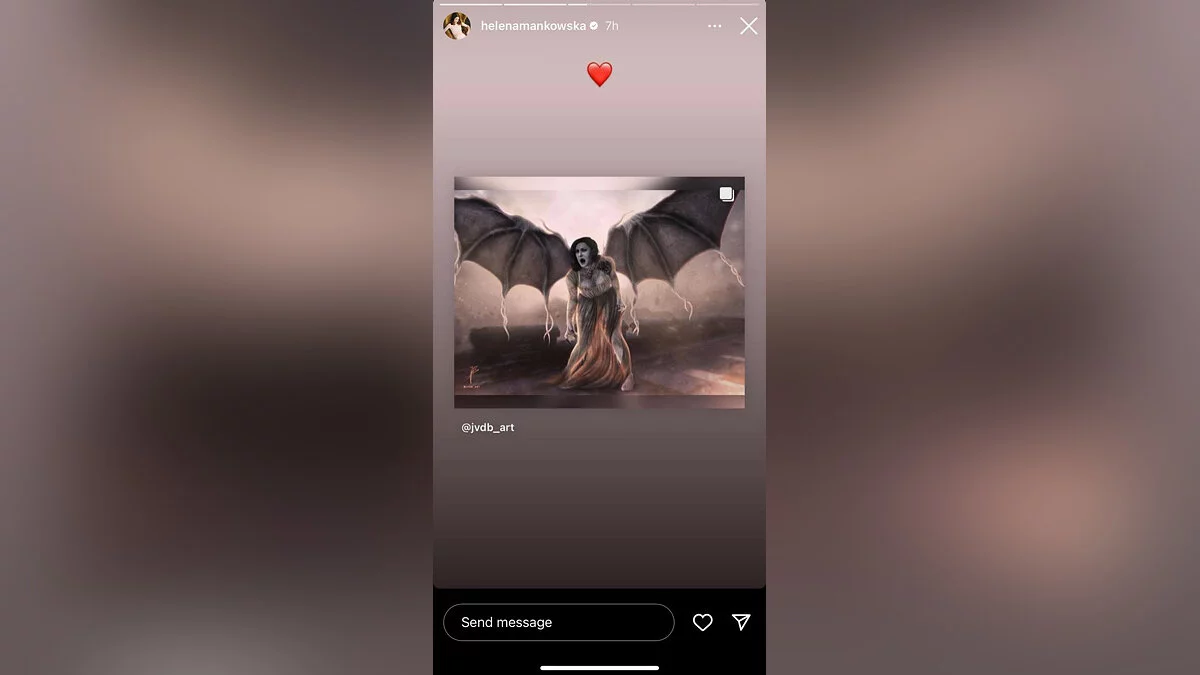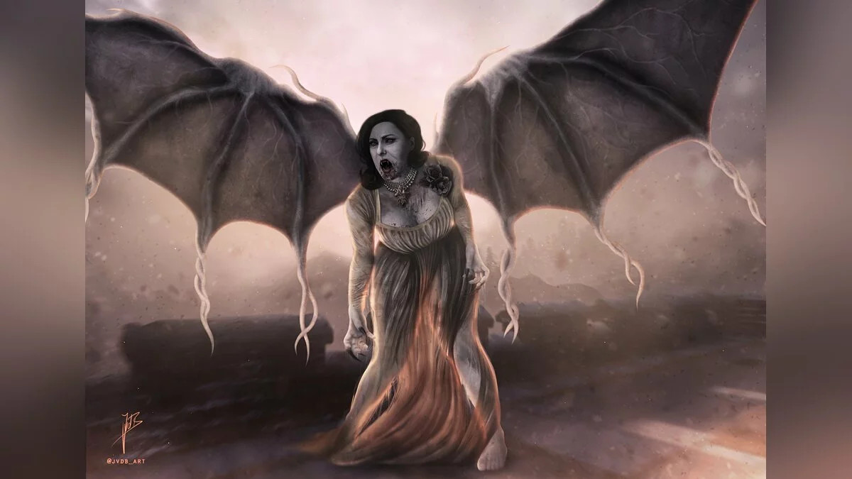 Модель Хелена Манковская (Helena Mankowska), подарившая свою внешность леди Димитреску из Resident Evil Village, опубликовала в социальных сетях арт, на котором знаменитая вампиресса показана с огромными крыльями. Работу выполнила художница с ником jvdb_art.
