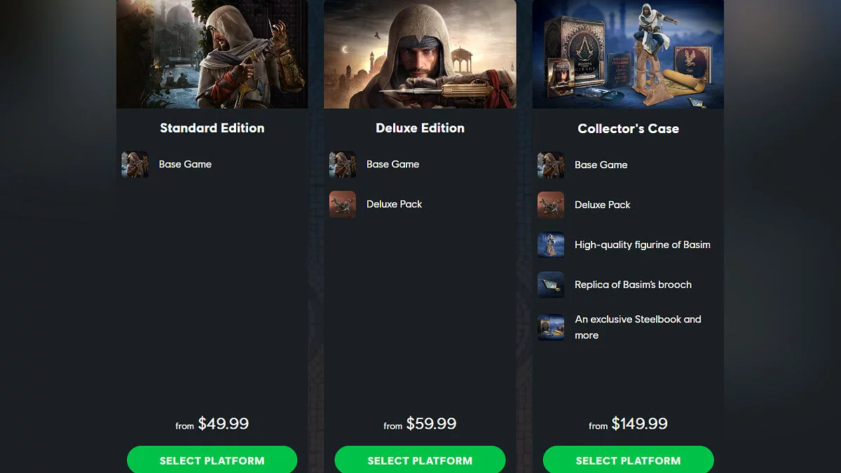 Также Ubisoft показала коллекционное издание. В его состав войдут 32-сантиметровая фигурка Басима, карта города, мини-артбук, стилбук, диск с саундтреком, брошь и бонусное DLC. Цена издания составляет $150.