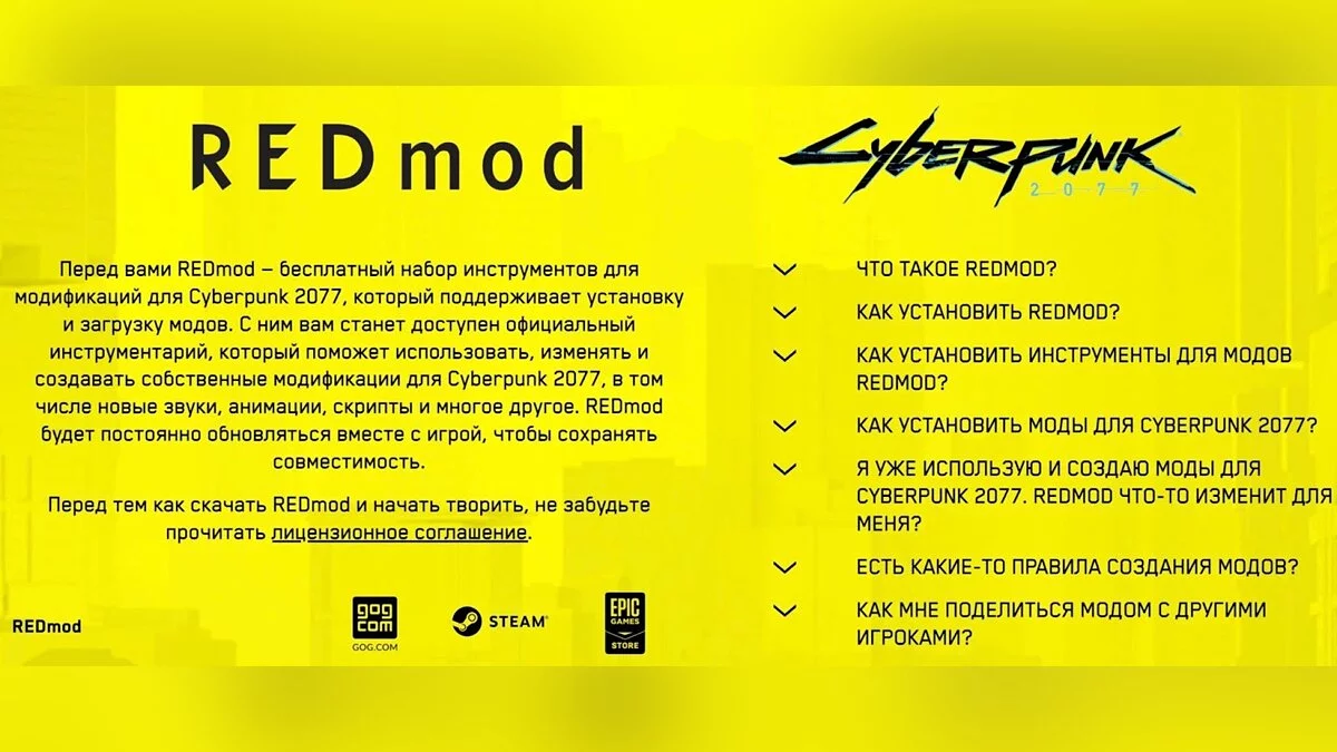 В компании заявили, что не будут заниматься поддержкой самих модов, за этим нужно будет обращаться к их авторам. Скачать REDmod можно здесь. Если не получается скачать напрямую, используйте VPN.