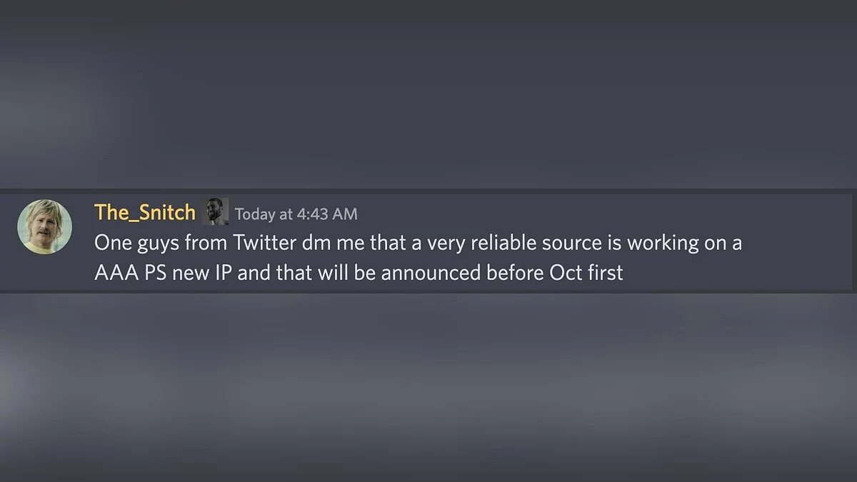 Инсайдер The Snitch, чьи прогнозы сбываются с завидной регулярностью, поделился еще одной важной новостью. В своем закрытом канале в Discord он сообщил, что Sony работает над AAA-игрой по новой вселенной. Представить ее должны до первого октября.