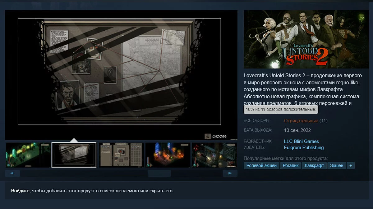 Купить Lovecraft's Untold Stories 2 в Steam можно за 424 рубля (с учетом скидки 15%, которая действует до 22 сентября). Проект также продается в GOG и Epic Games Store.