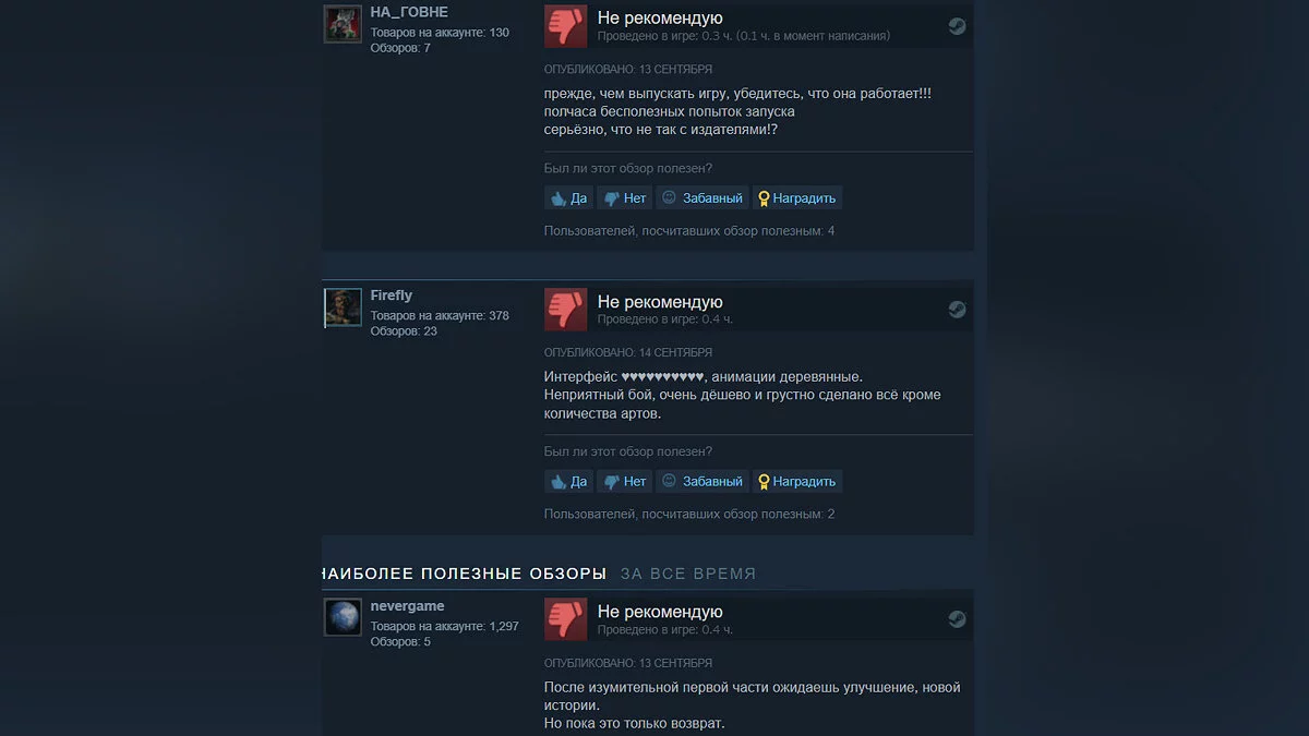Примечательно, что геймерам новая игра не понравилась. На момент написания новости проект имеет всего 18% положительных отзывов. Среди минусов геймеры выделяют скучную боевую систему и неудобный интерфейс.