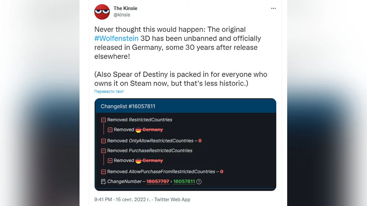 Никогда не думал, что это произойдет: с оригинальной Wolfenstein 3D сняли запрет и официально выпустили в Германии примерно через 30 лет после выхода в других странах!