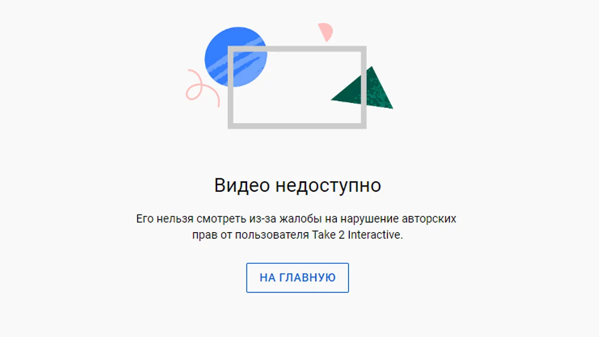 Теперь при попытке зайти на страницу c любым геймплейным роликом появляется сообщение: «Видео недоступно. Его нельзя смотреть из-за жалобы на нарушение авторских прав от пользователя Take 2 Interactive».
