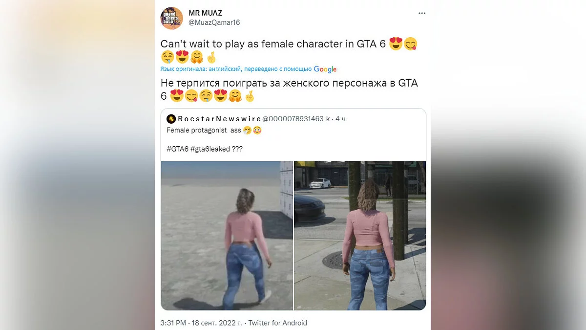 Одним из наиболее запоминающихся моментов в утёкших геймплейных роликах GTA 6 оказались главные герои — белый мужчина Джейсон и женщина-латиноамериканка Люсия, прообразом которых, по слухам, стали известные преступники Бонни и Клайд. Большой интерес вызвала Люсия — первый женский протагонист в серии. Особенно игрокам приглянулась её большая попа.