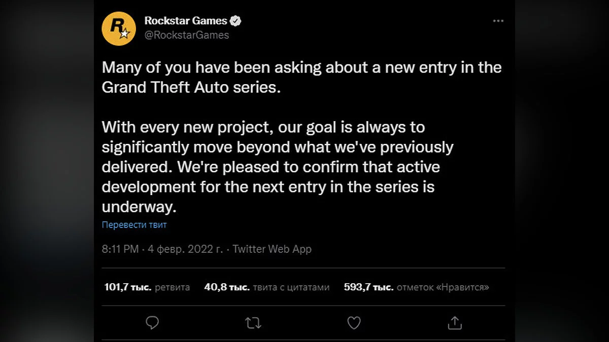 Занятно, что предыдущий рекорд тоже принадлежит Rockstar — речь о февральском посте, где компания официально подтвердила разработку шестой части. Сейчас у поста «скромные» 593 тысячи лайков.