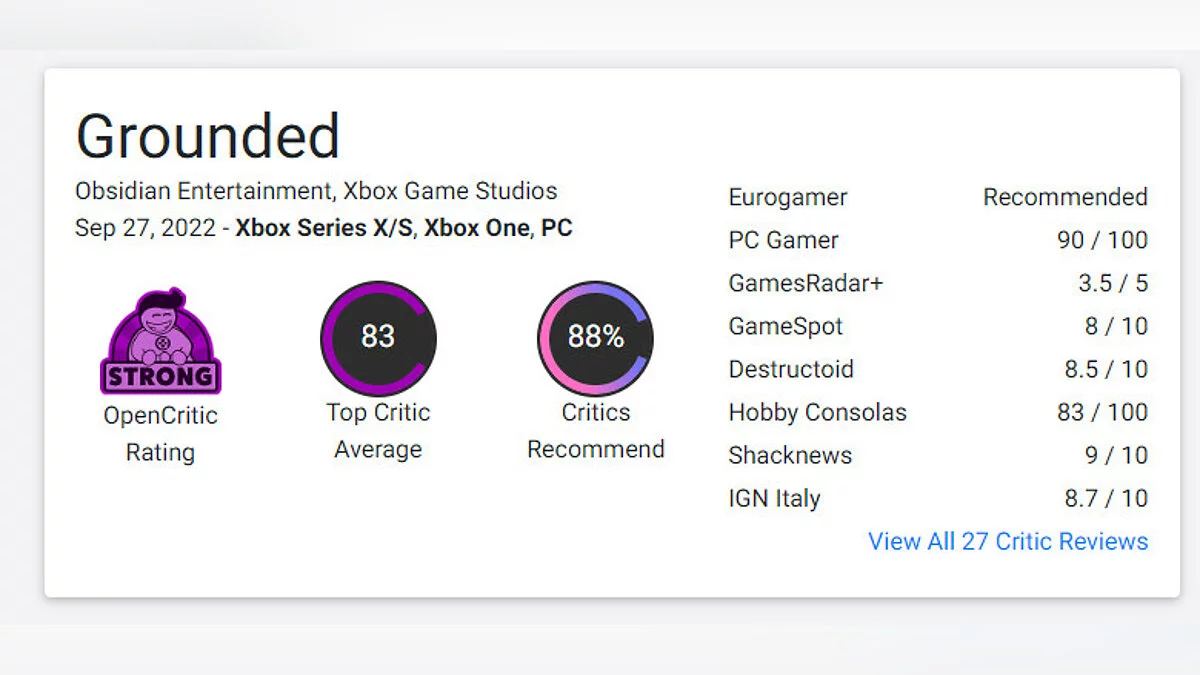Критики и игроки уже высоко оценили новинку. Средняя оценка на Metacritic составила 84 балла из 100, а на OpenCritic — 83 балла из 100.