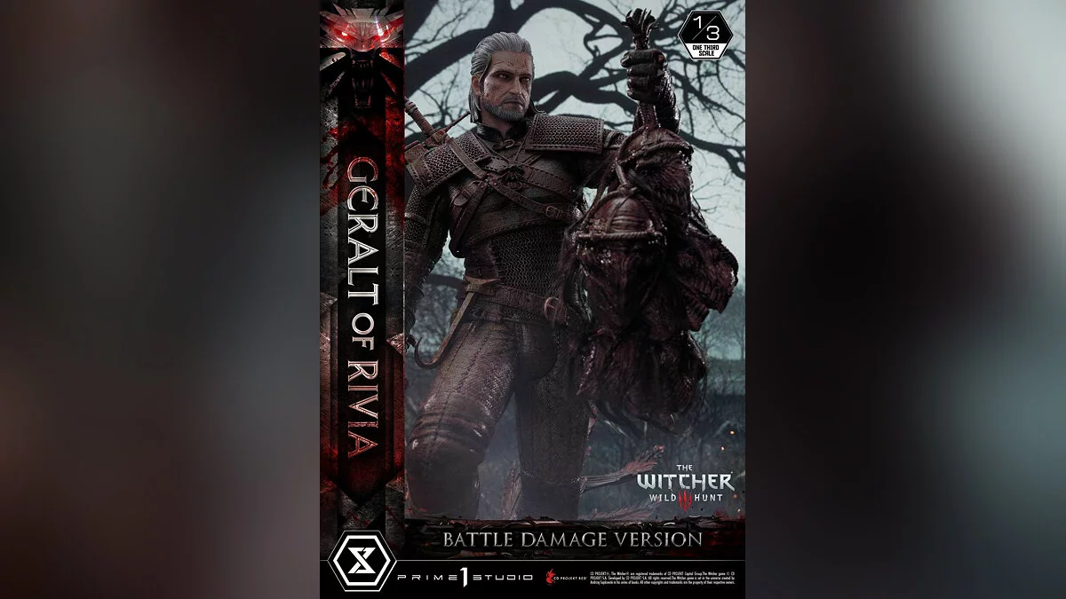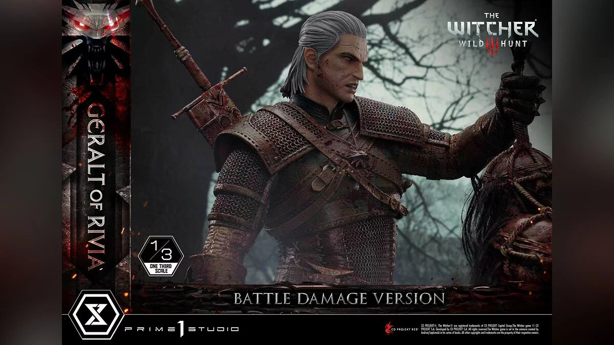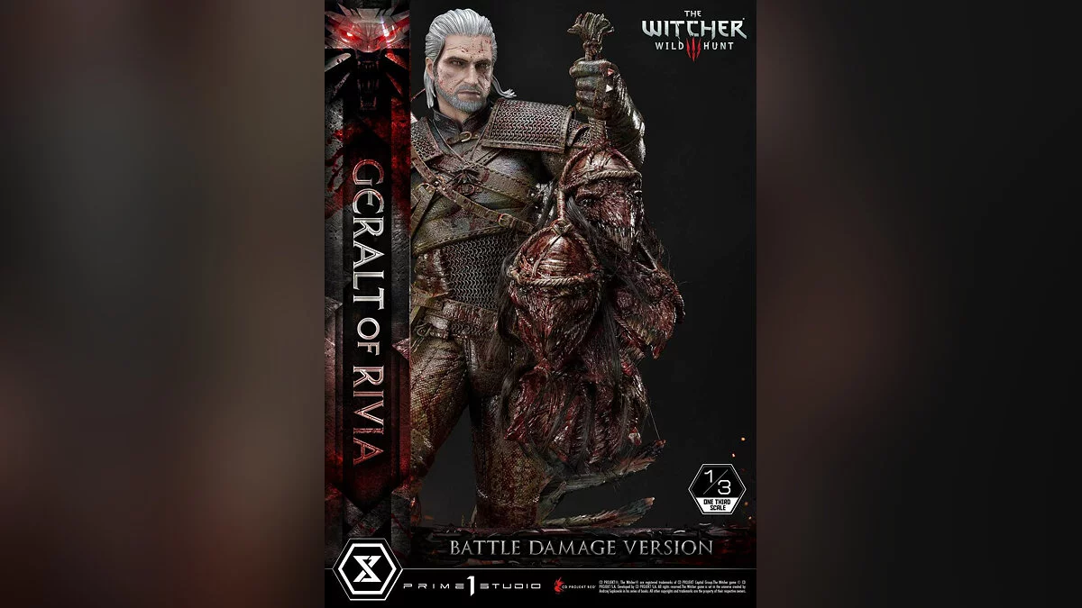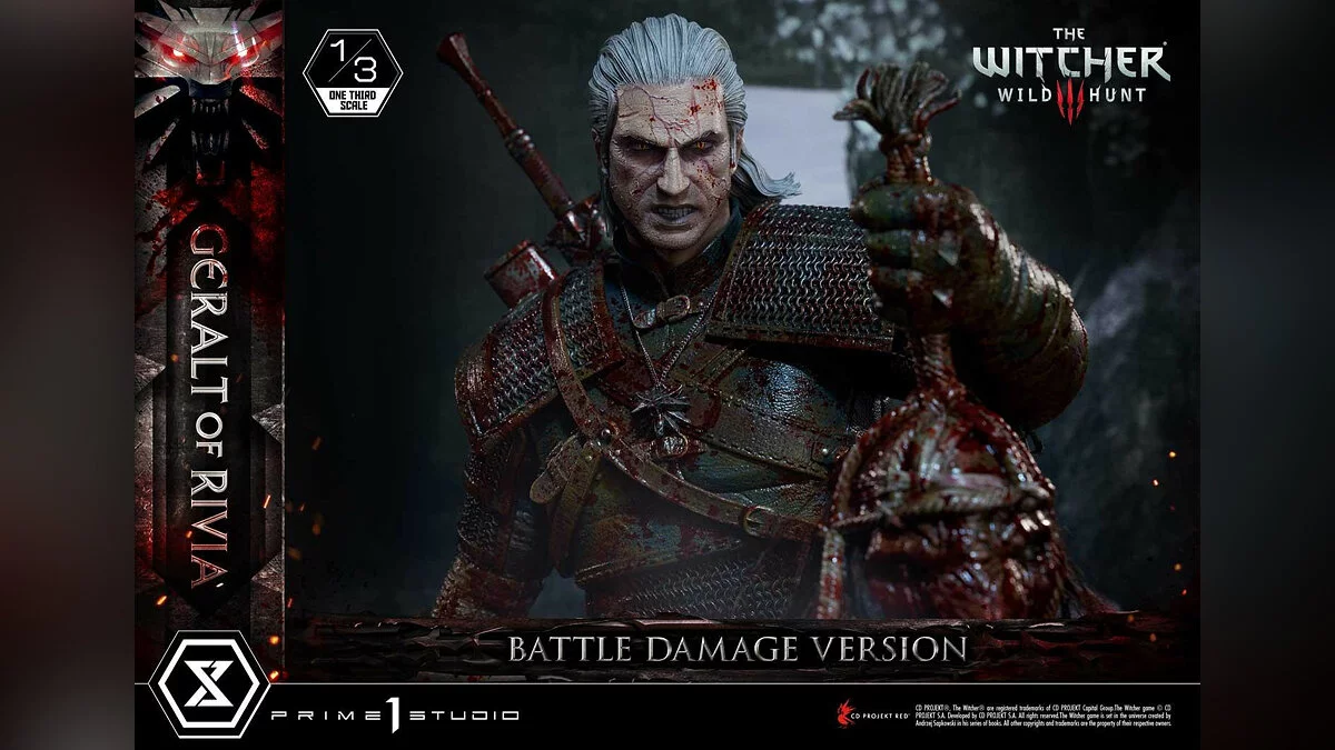 Отметим, что это обновленная версия фигурки 2021 года. Она получила название Battle Damage Version. Мастера нанесли много крови на броню Геральта и его меч, чтобы отразить жестокость закончившегося боя.
