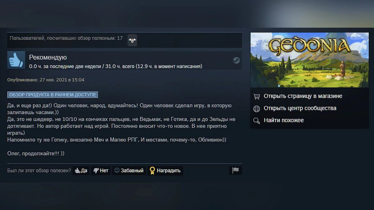 Разработчик из Красноярска Олег Казаков выпустил в Steam полноценную версию Gedonia — фэнтезийной ролевой игры с открытым миром. Проект находился в раннем доступе с июня 2020 года.