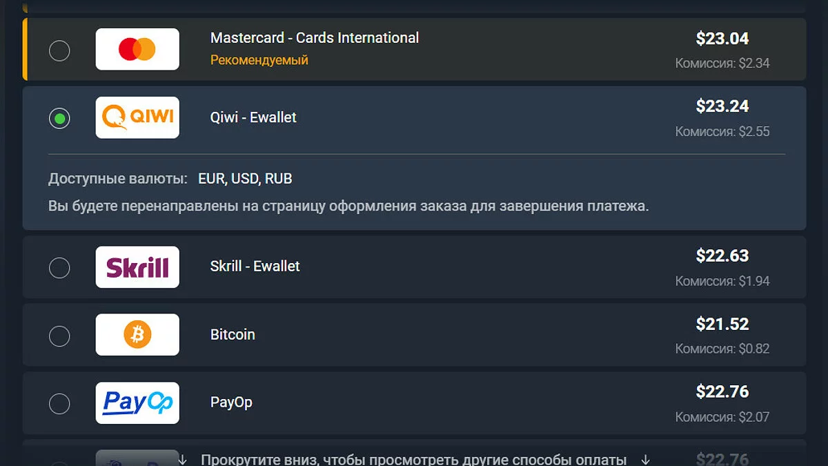 Для оплаты доступны все популярные сервисы, включая QIWI и не только.