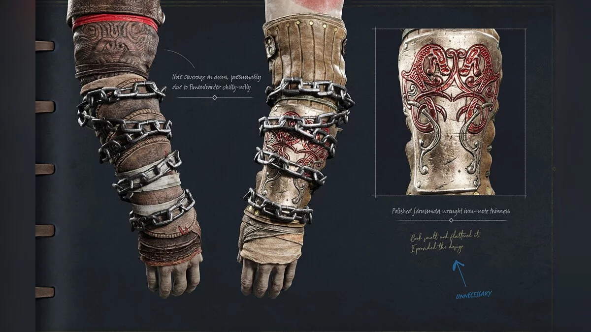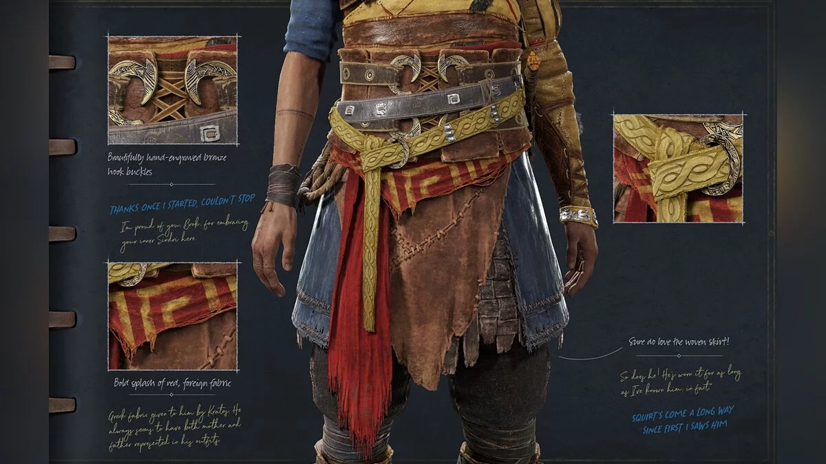 В гайде разработчик Рафаэль Грассетти (Raf Grassetti) подробно описал костюмы героев и объяснил, из какого материала они сделаны. Поскольку в мире игры наступила аномальная зима, героями пришлось утеплить свою одежду. Кратос, к примеру, использует медвежью шкуру. По словам Грассетти, модели и все части костюмов Кратоса и Атрея в Ragnarok были созданы с нуля.