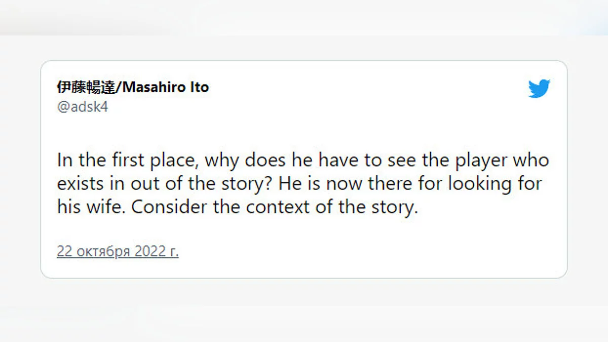 Все популярные игры, фильмы и прочий контент обзаводятся не только армиями фанатов, но и популярными фанатскими теориями, которые могут объяснять нестыковки в повествовании. Вот арт-директор Silent Hill 2 Масахиро Ито (Masahiro Ito) умудрился одним твитом разрушить популярную теорию, которая долгое время поддерживалась поклонниками игры.