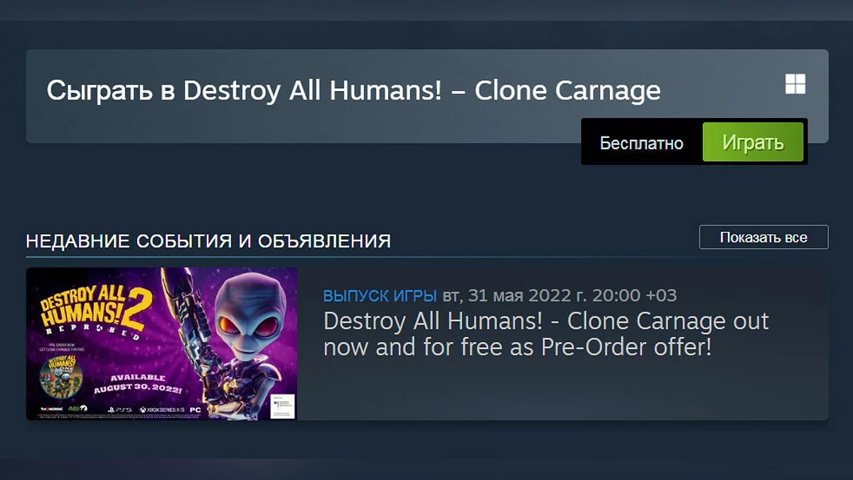 В Steam навсегда бесплатной стала Destroy All Humans! — Clone Carnage. Она стоила 659 рублей